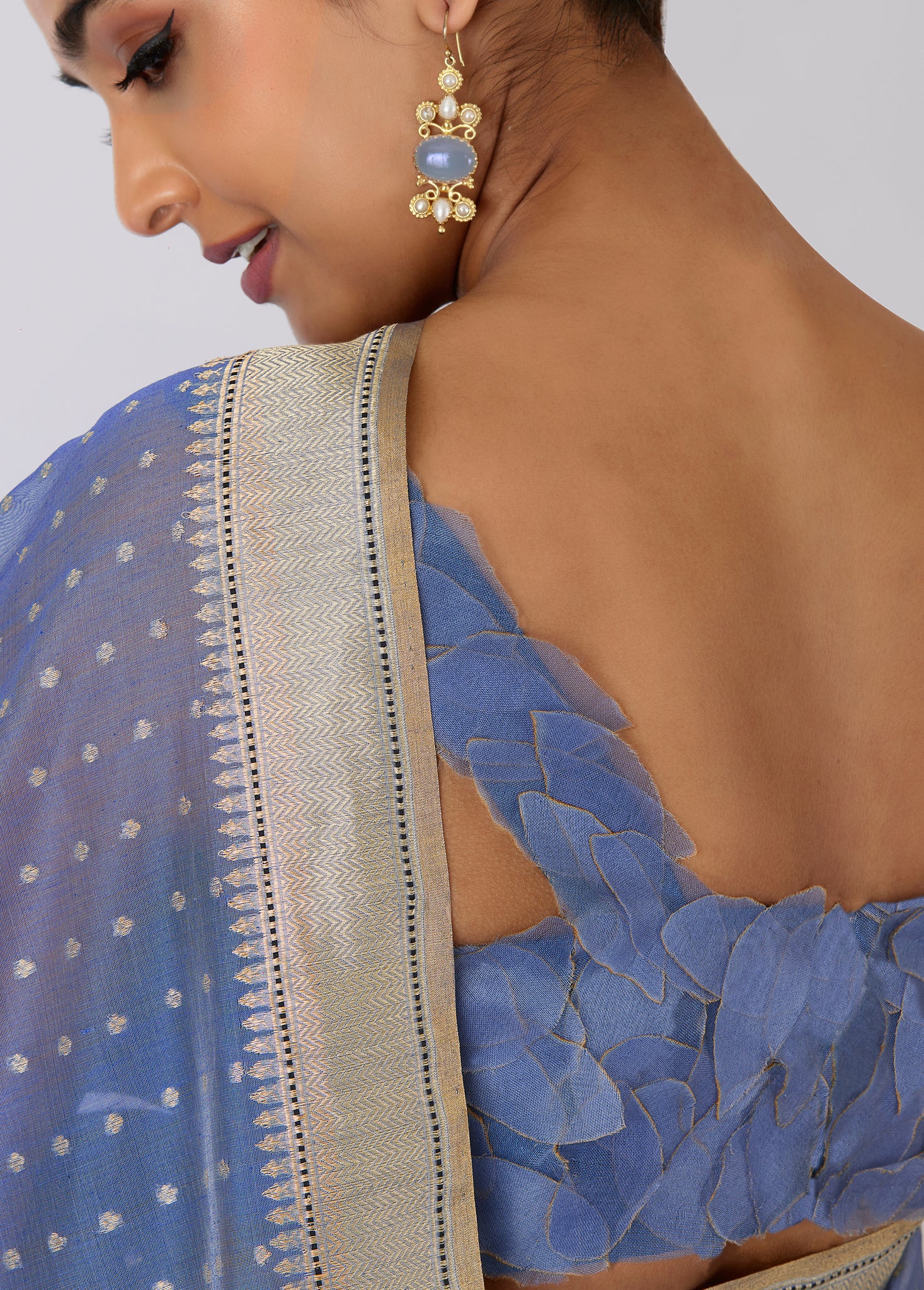 Characterized by its delicate leaf detailing, the couture bustier in cornflower blue gives off a sense of drama. Crafted from naturally dyed silk organza, the delicate leaves are delicately appliquéd on the bustier by hand, with great attention to detail.
