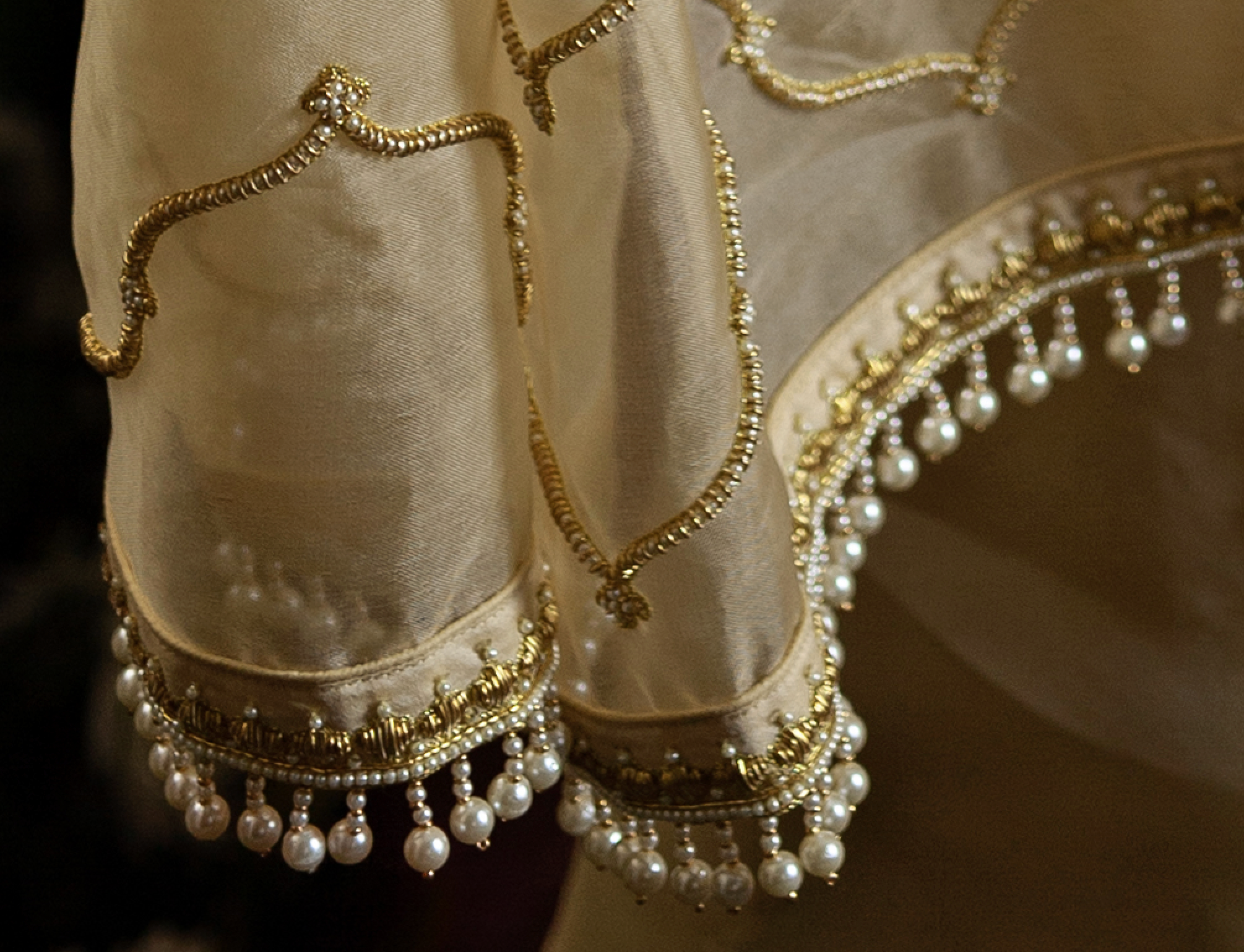 Surface ornamentation: Hand Embroidery in a dome pattern inspired by the Amber fort.
