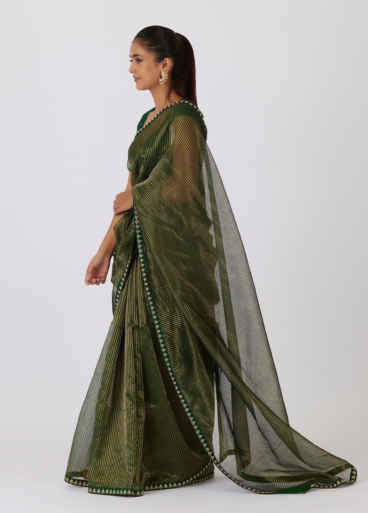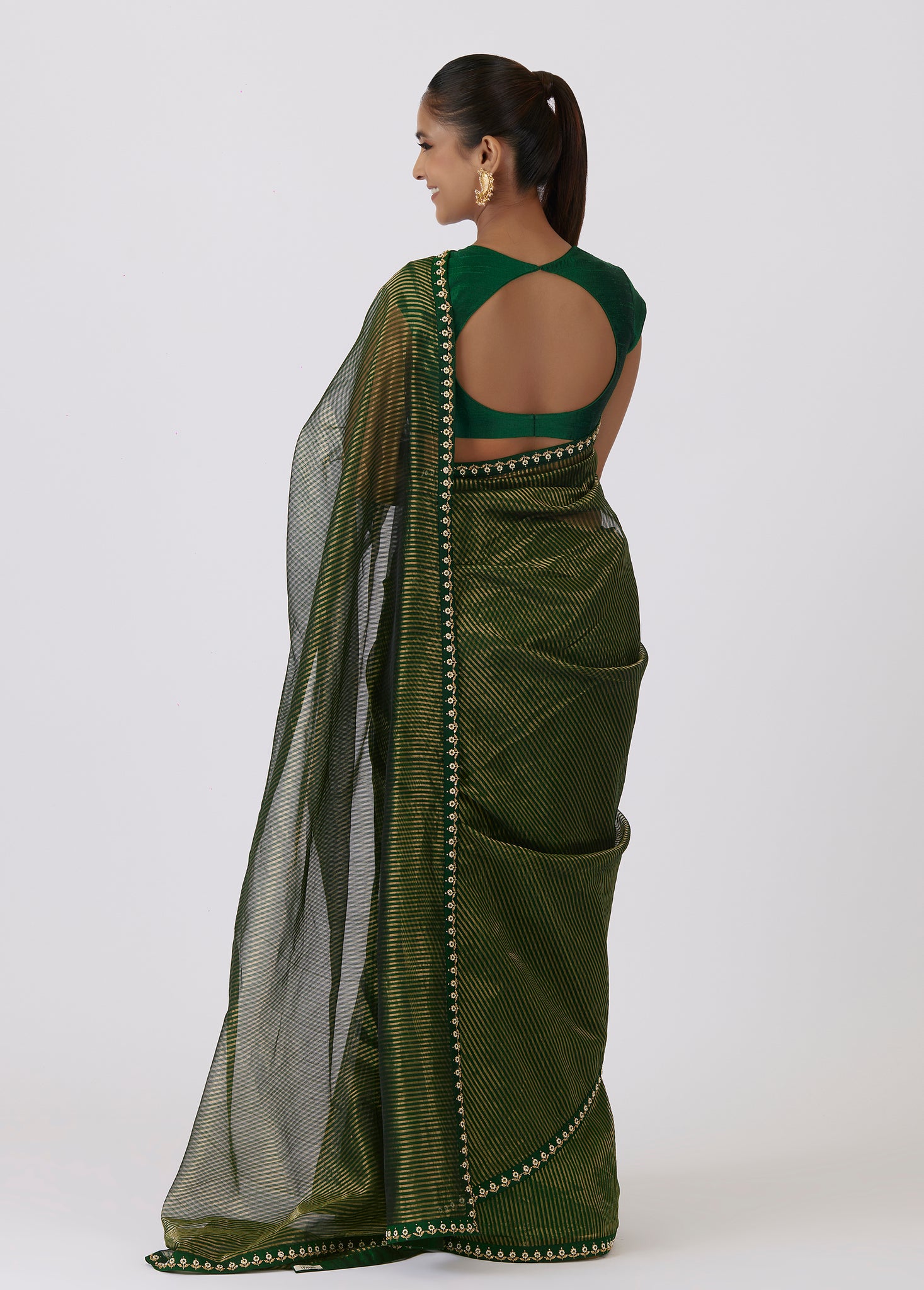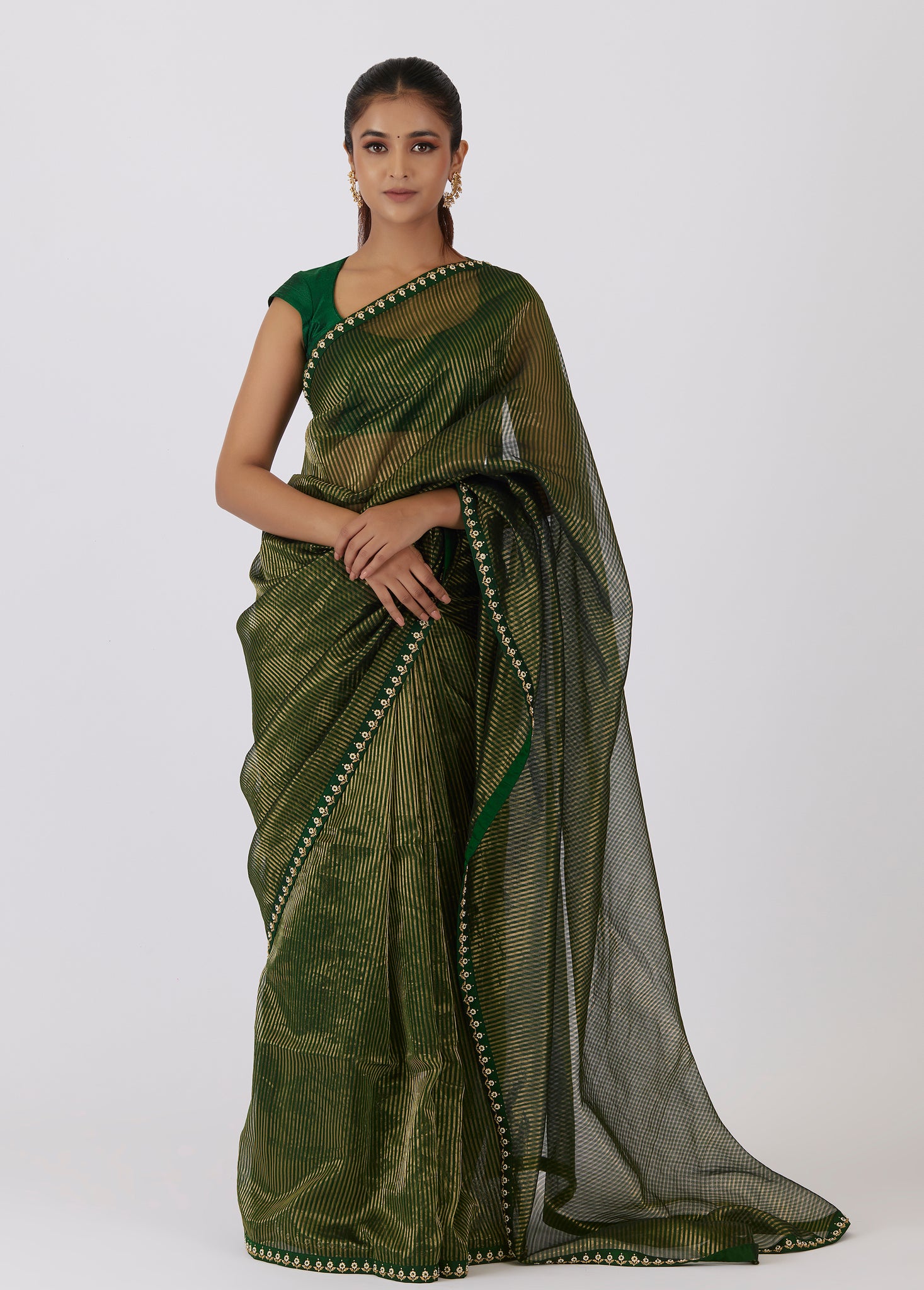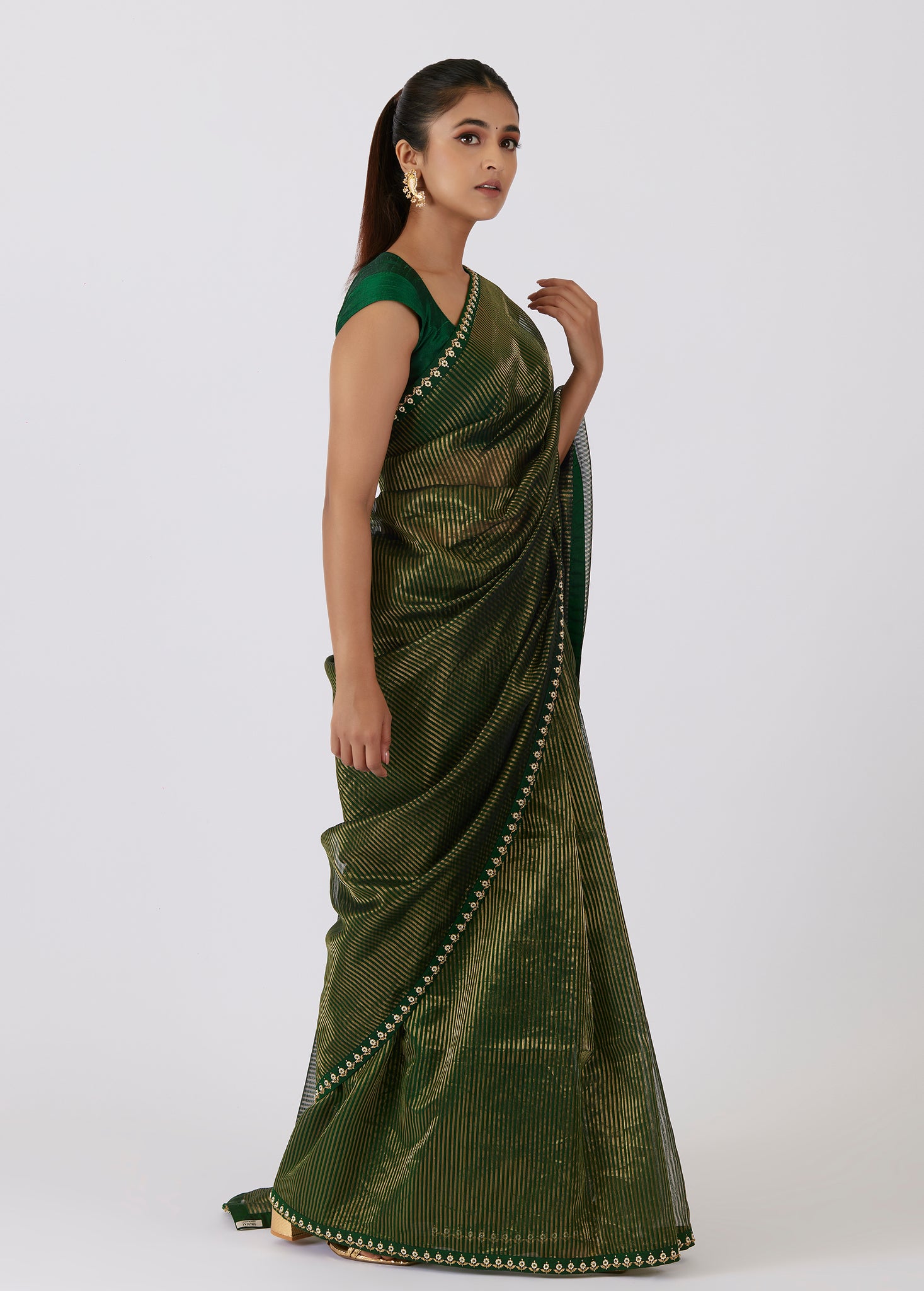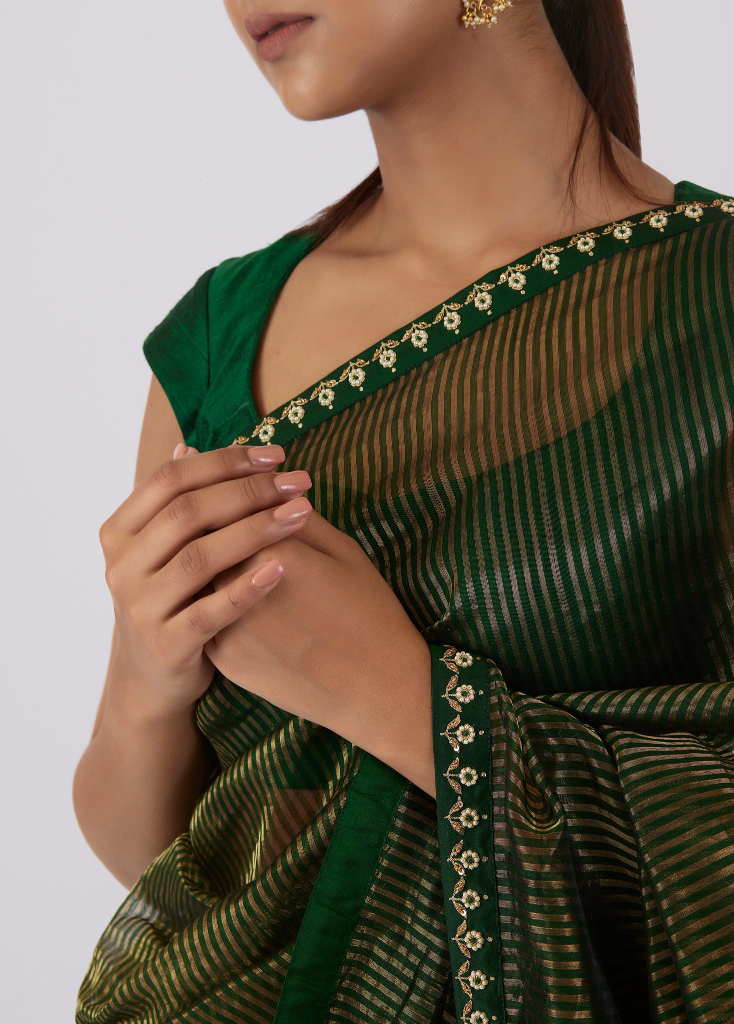 - Aari and Zardozi hand-embroidered border with delicate pearls
