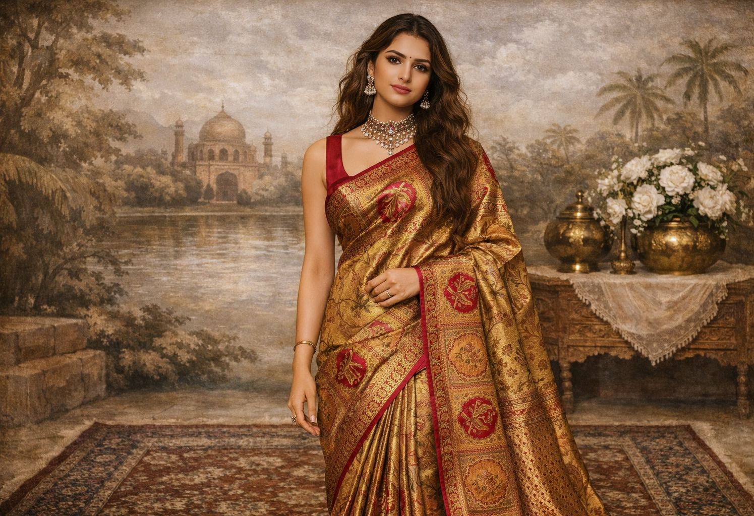 Perfect for evening soirees, weddings, or festive rituals, this heirloom piece embodies the soul of craftsmanship — a sari to be treasured across generations.